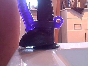Femme au foyer mature chevauche un gros gode noir et le filme pour son mari