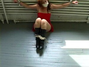 Robe rouge, culottes enlevées