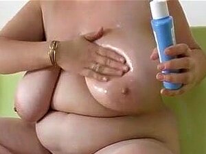 Masturbation des seins tombants de la moche mature